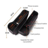 Universal Fit: No matter what make or model of car you own, our Car Seat Organizer is designed to fit perfectly, providing you with a hassle-free organizing solution.Multifunctional Design: This organizer is a true multitasker! It serves as a storage box, change holder, cup holder, and everything holder, instantly creating additional space for your smartphone, documents, wallet, beverages, and more.Crafted for Excellence: Made from premium PU leather, our Car Seat Organizer combines functionality with style. It enhances the overall aesthetics of your car interior while ensuring long-lasting durability.Keep Small Items Secure: Say goodbye to the frustration of losing small essentials, like your phone, between your car seat and center console. Our organizer effectively prevents these items from slipping through the gaps, keeping them within easy reach and avoiding distractions.Effortless Installation: Installing the storage box is a breeze! Simply insert it between the seat and console, and its universal design guarantees a snug fit in any make and model of vehicle.
