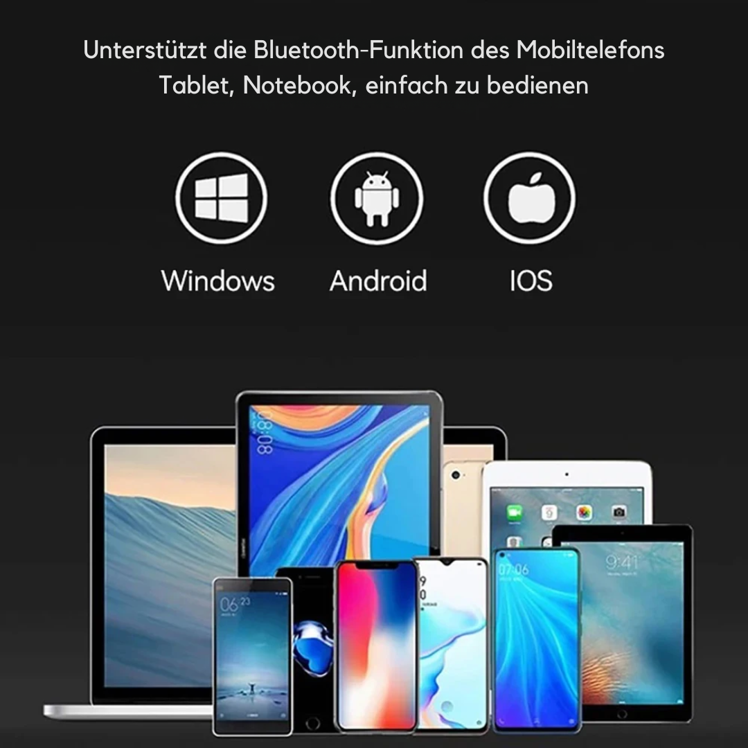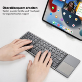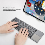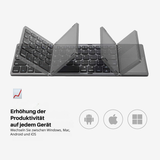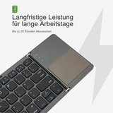 Stay productive wherever you are: the KeySync™ Mini Bluetooth Keyboard combines a compact design with full functionality. It is foldable, lightweight, and offers wireless Bluetooth connectivity to multiple devices. Enjoy a comfortable typing experience thanks to full-size keys and an integrated touchpad – perfect for working while traveling.
