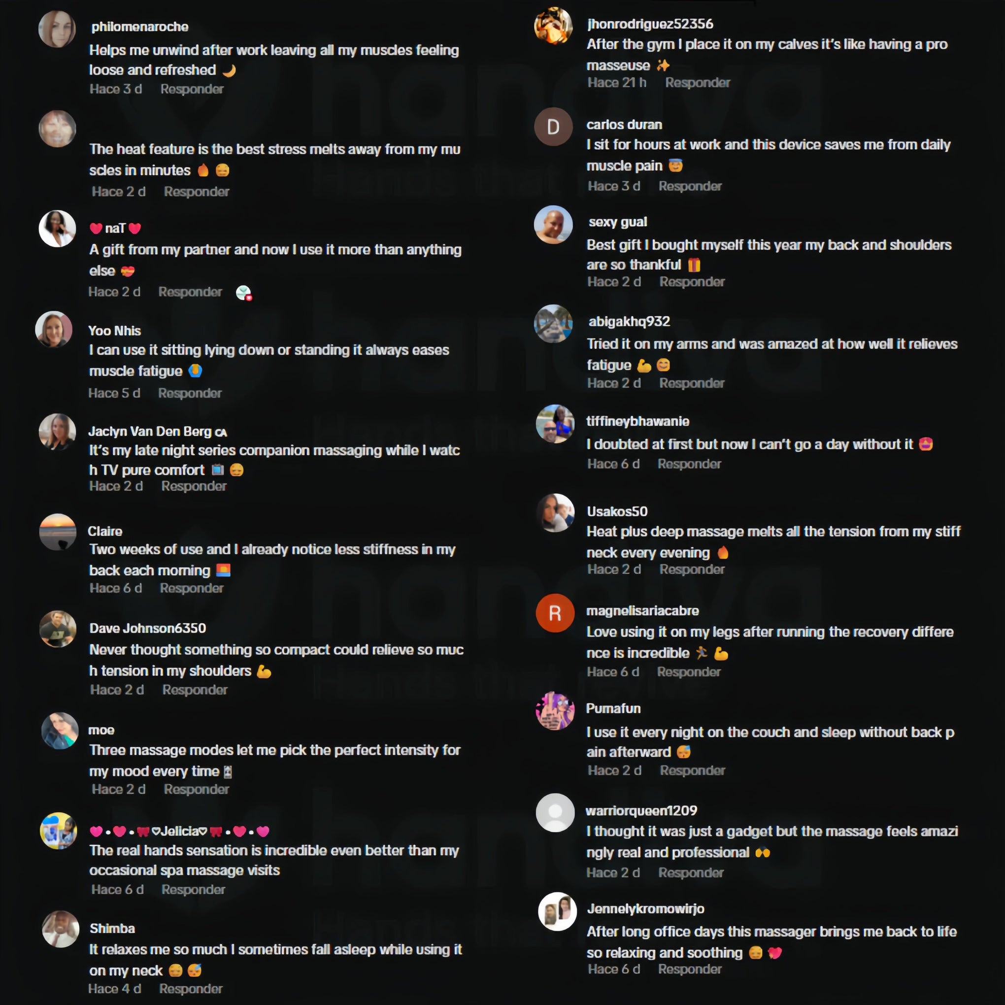 Perfect for the neck, shoulders, back, arms, and legs — The Handiva™ adapts to your body’s natural curves, simulating the gentle pressure and kneading motion of real, skilled hands.