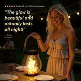 No — this solar lantern uses a high-tech LED that flickers just like a real flame. You get the cozy vibe without the fire, heat, or risk.