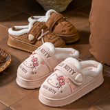 Experience cozy comfort with the Hello Kitty Cozy Bow Slippers. Crafted with soft plush material, these slippers provide gentle warmth and cushioning for your feet. The charming Hello Kitty design, complete with a signature bow, adds a playful touch to your loungewear. Ideal for indoor use, they offer slip-resistant soles for safety on various surfaces. Perfect for fans seeking both style and relaxation in their footwear.