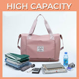 The collapsible design can transform this bag from a week-long trip to daily use in seconds. When extended the bag easily fits 5-7 days worth of clothing and supplies.Made of durable, waterproof oxford fabric, its solid weave prevents rips or tears while being used on a day-to-day basis. Available in 6 different colors!Product InformationColor: Black, Rose, Purple, Cherry, Blue, GreenMaterial: Oxford FabricWeight: 0.4KG